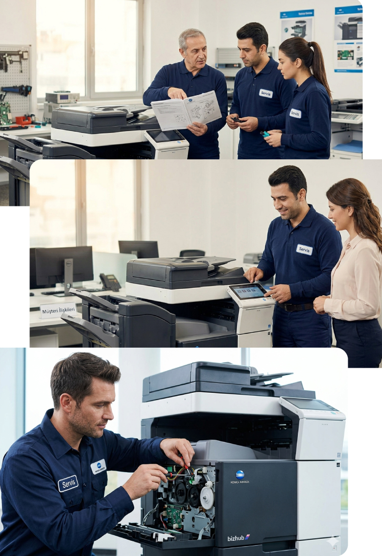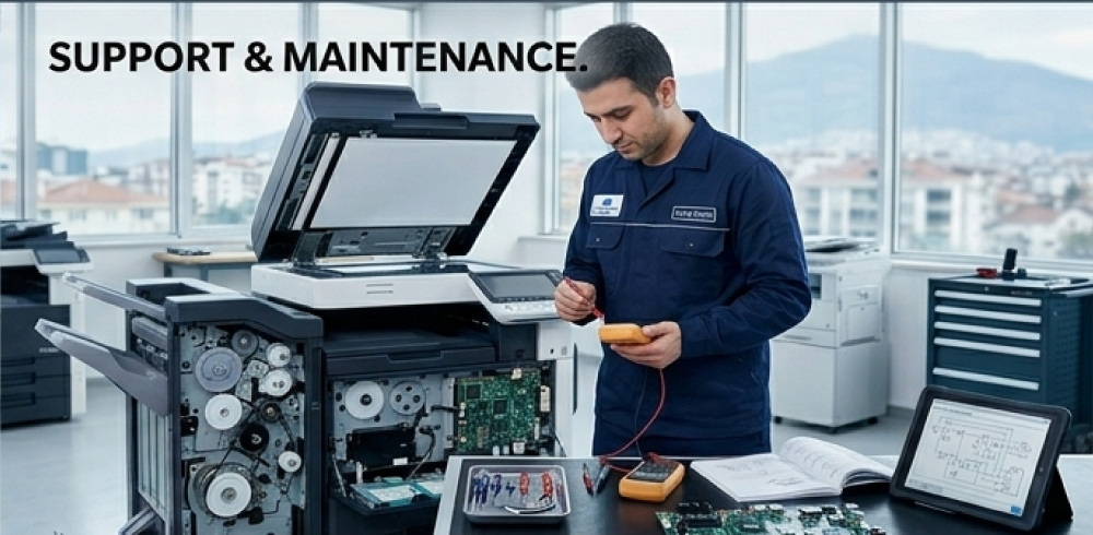 Dijital ofis sistemlerinden endüstriyel baskı makinelerine kadar geniş bir ürün yelpazesiyle; satış, teknik servis, orijinal yedek parça ve toner desteği alanlarında “tek noktadan tam hizmet” anlayışıyla çalışıyoruz. Sektördeki 40-50 yıllık birikimimiz, en karmaşık teknik sorunlarda bile hızlı, kalıcı ve profesyonel çözümler üretmemizin en büyük teminatıdır.